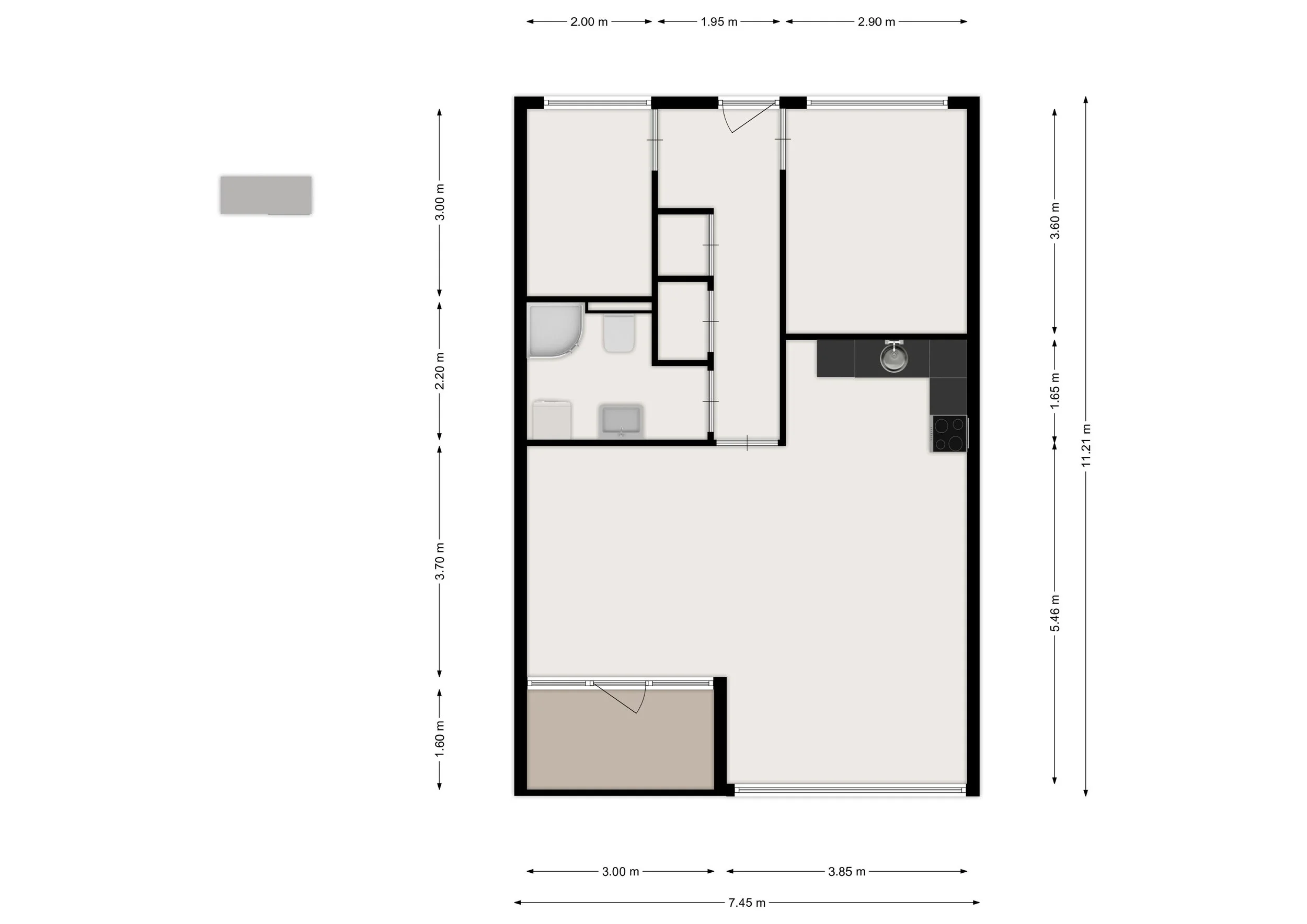 Dit 3-kamerappartement bevindt zich op de tweede verdieping van het complex en is te bereiken via de lift of de trap. Via de open galerij loop je naar de voordeur van het appartement. Bij binnenkomst stap je de hal binnen met daarin de meterkast en de gangkast. Aan je linkerhand zit de eerste slaapkamer en aan de rechterhand de tweede slaap- of studeerkamer die beide uitkijken op de galerij. Verderop in de hal kom je in de badkamer met daarin een douche met mengkraan, wastafel met spiegel, wc en aansluiting voor de wasmachine. Tot slot geeft de hal toegang tot de lichte, T-vormige woonkamer met open keuken die is voorzien van een inductiekookplaat, afzuigkap, koelkast en vaatwasmachine. Via de woonkamer kun je naar het inpandige balkon die uitkijkt op het Maandereind. Op de begane grond van het complex vind je de privéberging van 5 m2 en de eigen parkeerplaats.