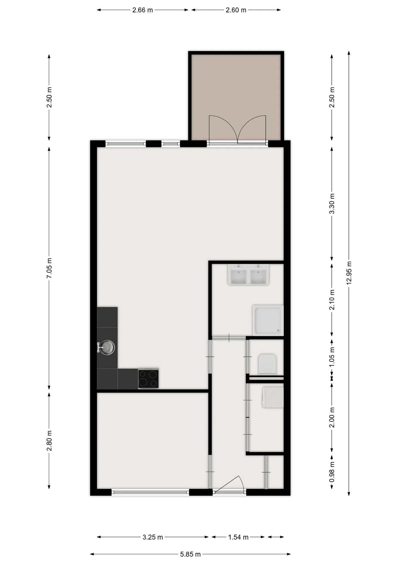 Dit 2-kamerappartement bevindt zich op de tweede verdieping van het complex en is te bereiken via de lift of de trap. Via de open galerij loop je naar de voordeur van het appartement. Bij binnenkomst stap je de hal binnen met daarin de meterkast, de gangkast met aansluiting voor de wasmachine en de aparte wc met fonteintje. Aan je linkerhand zit de slaapkamer die uitkijkt op de galerij. Verderop in de hal kom je in de badkamer met daarin een douche met mengkraan en een dubbele wastafel met spiegel. Tot slot geeft de hal toegang tot de lichte, L-vormige woonkamer met open keuken die is voorzien van een inductiekookplaat, afzuigkap, koelkast en vaatwasmachine. Via de woonkamer kun je naar het balkon die uitkijkt op de Ds. Muntinglaan. Op de begane grond van het complex vind je de privéberging van 5 m2 en de eigen parkeerplaats.