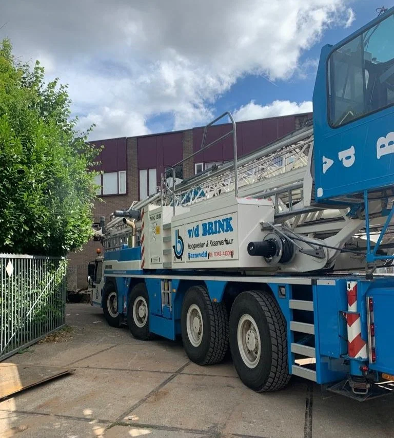 De vrachtwagenchauffeurs die het bouwmateriaal bezorgen leveren een knap staaltje manouvreerwerk door de smalle Ds. Muntinglaan.